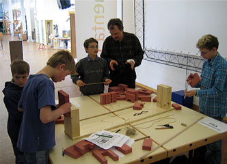 Tragendes Bindeglied zwischen den glatten Bauklötzen sind runde Holzstäbe und Hanfschnüre von 2 mm Durchmesser, welche den Vorteil haben, unter Last sehr verformungsarm zu sein. Zudem versagen die Hanfschnüre ohne Vorankündigung; das hat den entscheidenden Vorteil, dass die Brücken meist schlagartig nach Überschreiten der Maximallast versagen. Dies löst bei den Kindern große Freude aus.